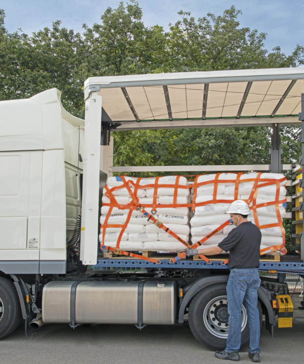- Překrytí a zajištění nákladů na přívěsech a plošinových korbách.