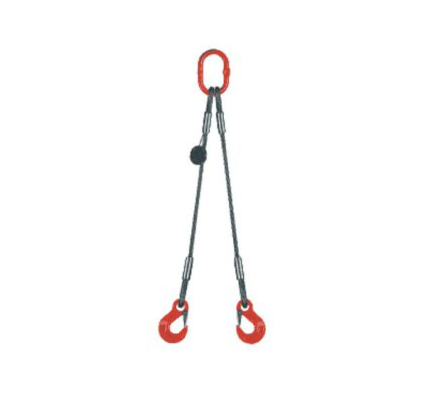 Lanový vázací prostředek z ocelového lana pozinkovaného se zalisovanými hliníkovými objímkami, velkým ocelovým okem na jedné straně a hákem na straně druhé.