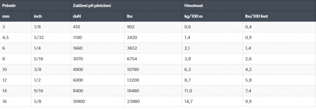 Varianta: LanexPrůměr 4,5mm - 4912 Kč Průměr 6mm - 7172 Kč Průměr 8mm - 11858 Kč Průměr 10mm - 17589 Kč Průměr 12mm - 24145 Kč Průměr 14mm - 36179 Kč Průměr 16mm - 43945 Kč
