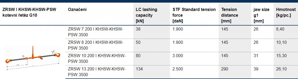 Kotevní řetěz G10 ZRSW I KHSW-KHSW-PSW