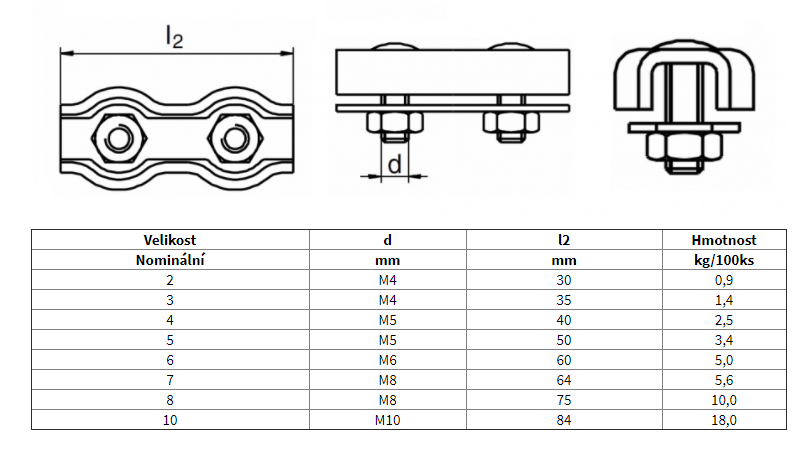 Provedení lanové svorky DUPLEX se dvěma šrouby.