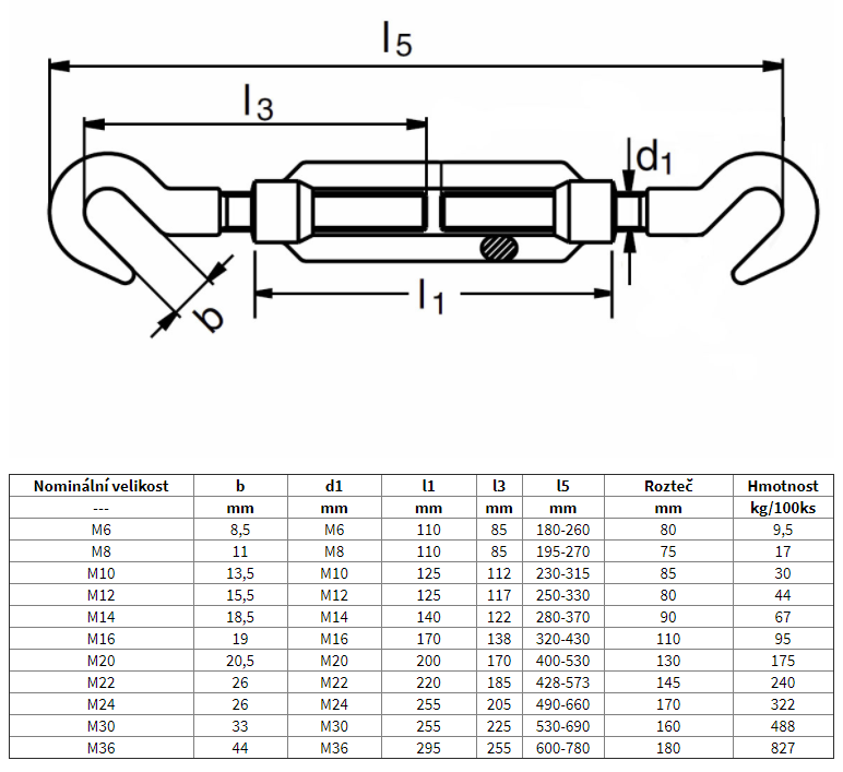 - Tento napínák má na jedné straně pravý a na druhé straně levý závit.