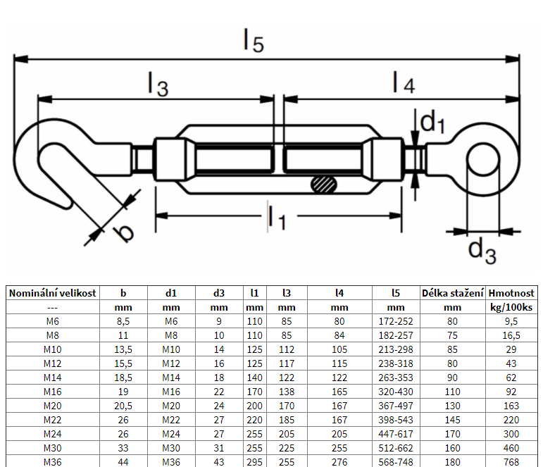 Provedení napínáku oko a hák.