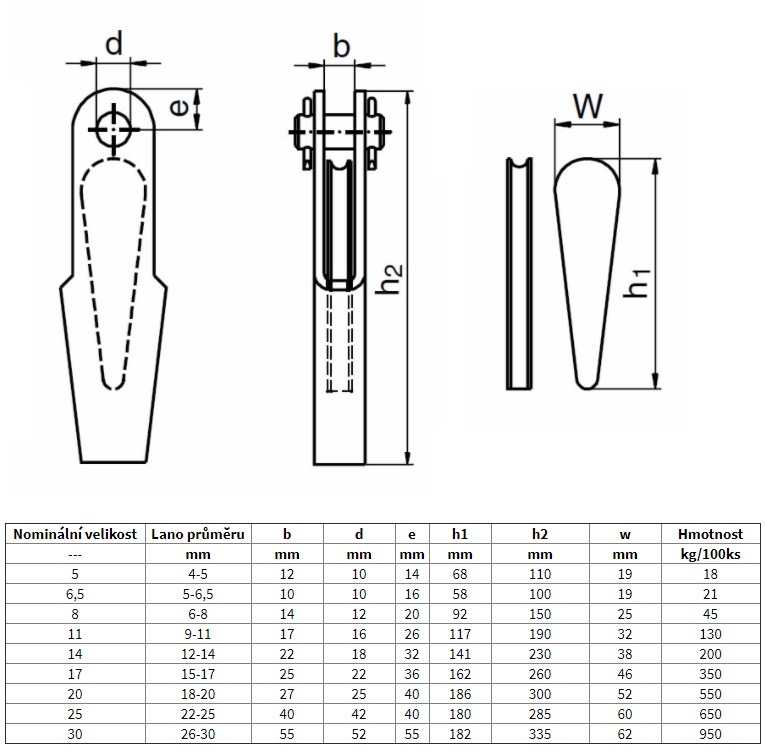 Provedení lanového zámku dle DIN 15315 - s čepem.