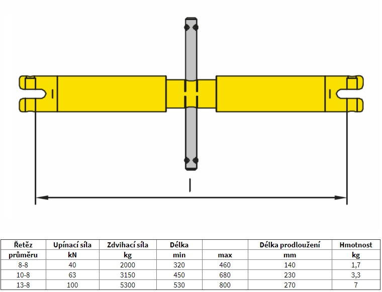 Vřetenový napínací zámek SSP, třída 8, žlutý lak