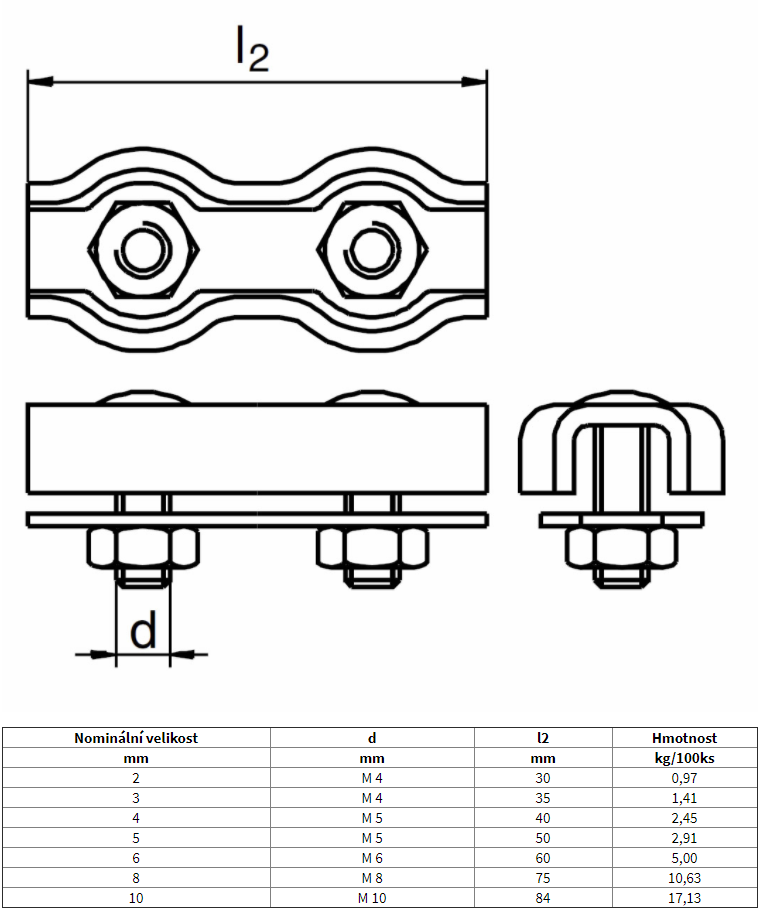 Provedení lanové svorky se dvěma šrouby - DUPLEX.