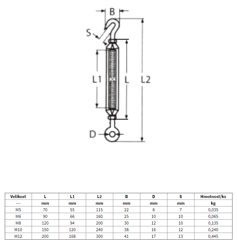Nerezový napínák AISI 316 hák-hák
