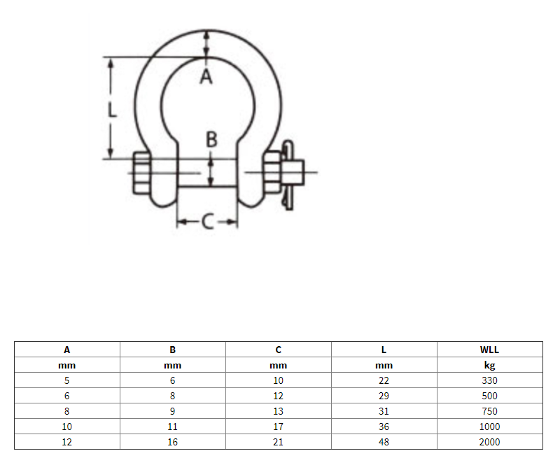 Nerezový třmen omega s maticí a závlačkou AISI316-A4.
