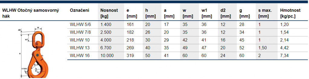 Otočný samosvěrný hák se automaticky uzavírá a zajišťuje, což znamená, že ho nelze při zatížení otevřít. Je vhodný pro Connex systémy a nabízí další spojovací možnosti, díky velkému otočnému oku. Rozměr rozevření je větší než u háku HSW, čímž je více flexibilní v možnostech použití.