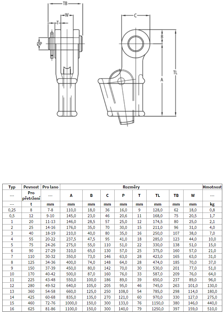 Lanový zámek prvotřídní kvality s maticí a závlačkou.