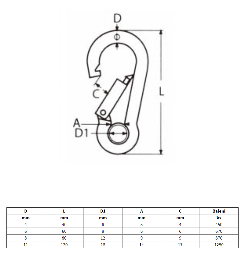 Nerezová karabina s rychlouzávěrem a očnicí AISI 316