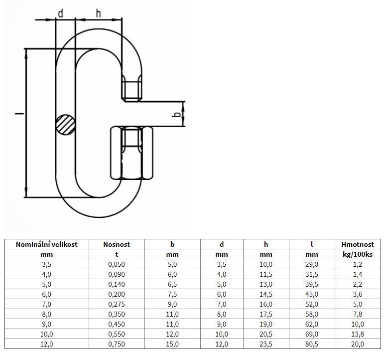 Řetězová rychlospojka s velkým otvorem Form B poz...