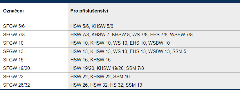 - V tabulce zjistěte, která sada pasuje s kterým hákem.