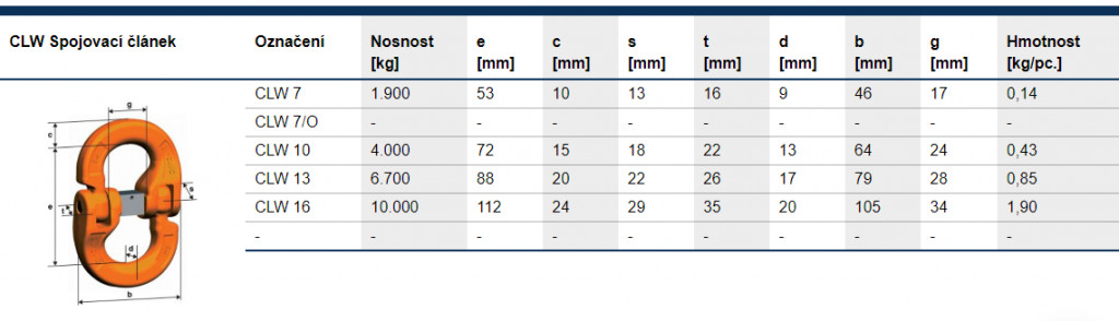 Spojovací článek CLW je vyroben z vysoce kvalitního materiálu. Díky sofistikovanému výrobnímu procesu vyniká tento produkt vysokou kvalitou a účelností. Spojovací článek pro: zavěšovací článek - řetěz; řetěz- řetěz; řetěz- hák; zavěšovací článek - hák; apod.