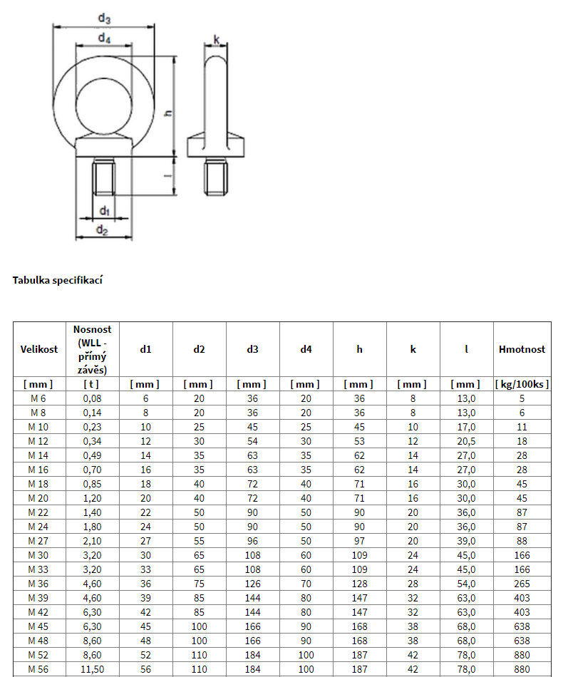 - splňuje požadavky normy DIN 580 a EN 10204, 3.1