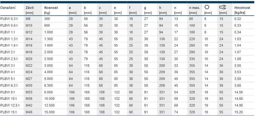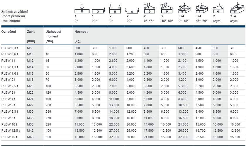 Pewag winner profilift beta. Pětinásobná bezpečnost. Toto je další vázací bod, který je otočný o 360°. Oko je sklopné do úhlu 180° a drží v jakékoliv požadované pozici díky vyměnitelné patentované pružině. Každý upínací bod je označen individuálním sériovým číslem a povolenou nosností pro většinu nepřímých zavěšení, s možností zvýšené nosnosti v přímém tahu. Šestiúhelníkový speciální šroub vyrobený z materiálu v pevnostní třídě 10.9 je také vyměnitelný a chráněný proti ztrátě. Šroub je 100 % defektoskopicky testován a opatřen povrchovou úpravou proti korozi a je označen nosností a velikostí závitu. Může být montován šestihranným nebo francouzským klíčem.