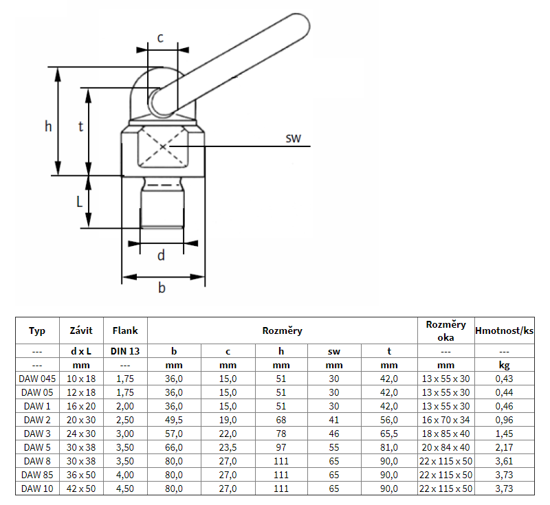 - Vázací bod DAW lze upevnit pomocí šestihranného klíče nebo francouzského klíče