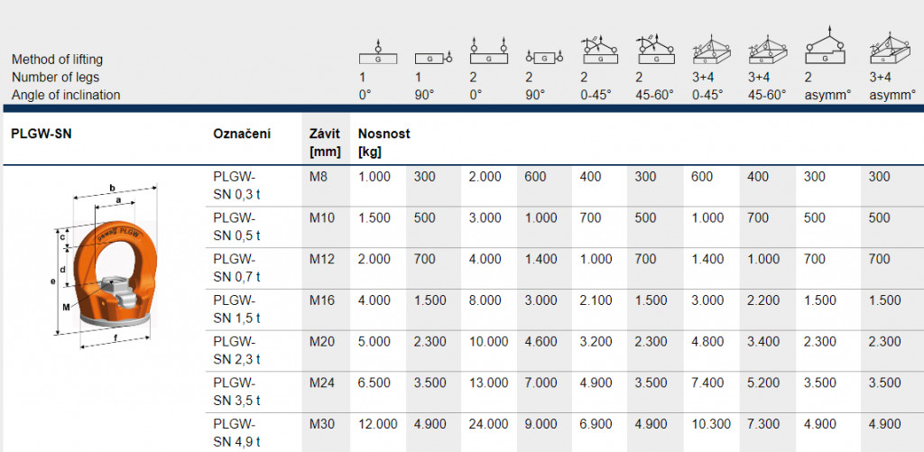 • vázací oko se opírá o hrany nebo náklad Každý zvedací bod je dodáván s individuálním sériovým číslem. K dispozici také s peTAG na vyžádání.
