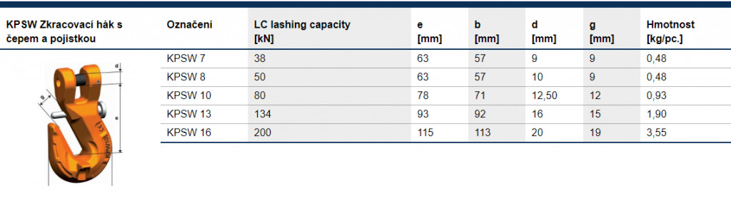 Tento standardní zkracovací hák zajišťuje optimální součinnosti mezi řetězem a hákem díky speciálnímu designu háku v oblasti kontaktu s řetězem a navíc poskytuje ochranu před náhodným uvolněním řetězu. Při zkracování nedochází ke snížení nosnosti a hák může být namontován i dodatečně.