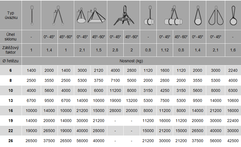 Uvedené řetězy jsou běžnými závěsy. Možnost dodání i v jiných délkách, průměrech a montážních systémech než je zde uvedeno.