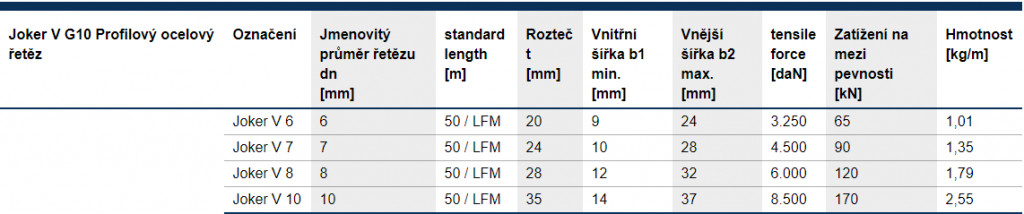 Joker V G10 profilový ocelový řetěz. Patentovaný profil, nejvyšší přípustná tažná síla a nejlepší odolnost vůči oděru.