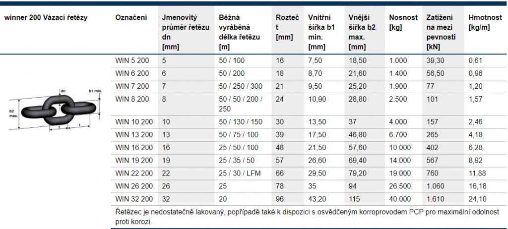 Řetězy z kruhové oceli jsou zejména vhodné pro zavěšování a kotvení. Upraveno pro vyšší nosnosti. Použitelné při maximální teplotě do 200°C.